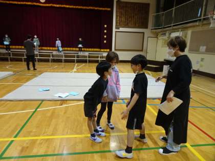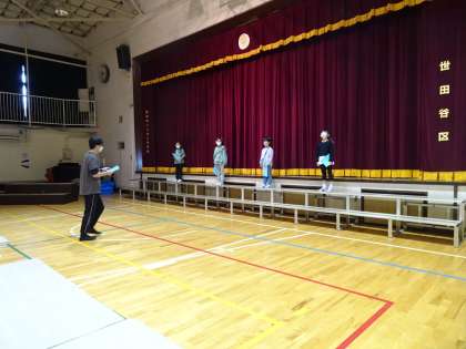 今日は、2年生に、パブリックシアターの方々のご指導をいただきました。場面ごとにとても的確なアドバイスをいただき、子どもたちも、教員もイメージを創ることができました。