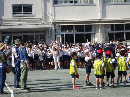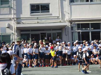 応援団も迫力がありました。中里小は、一番小規模校なのに、大きな応援団をもっているような印象でした。まずは、低学年の部で一勝しました。