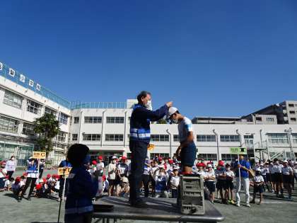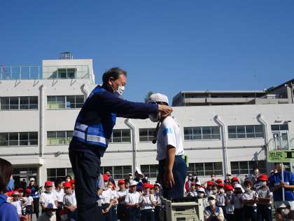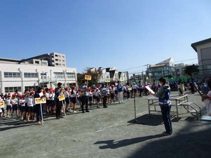 低学年も高学年も中里小が優勝しました。毎日の朝練習の成果です。メダルを授与した後、チームキャプテンが、一言ずつコメントを述べました。とても立派な挨拶ができました。全校朝会でも披露します。