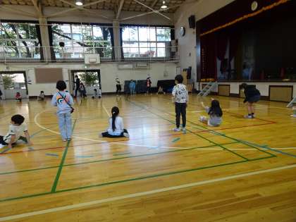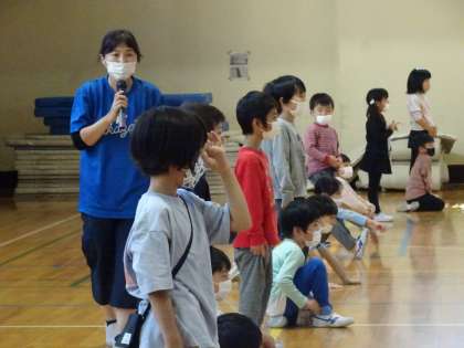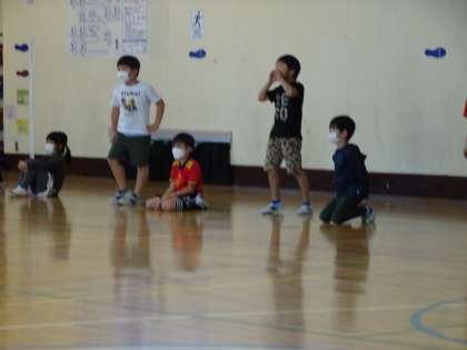 1年生は、まず、体育館で声を出す練習から始めました。相手に向かって言葉を発するのは、意識をしないとできません。まず一人一人が頑張ることが課題です。楽しそうに取り組んでいました。
