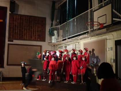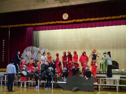 名前はスイミー、上の学年の子どもは習ったことのある物語です。可愛いお魚たちがどのような冒険をするのでしょうか。各学年記念写真を撮りました。