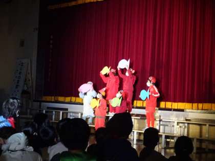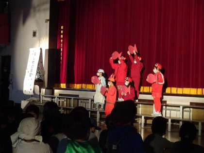 ダンスの次は、はじめの言葉 今日は、1年生です。色とりどりの表現の工夫が可愛くて、会場が笑顔でいっぱいになりました。