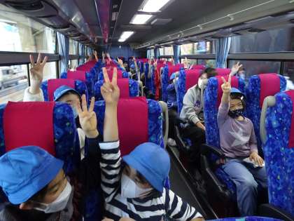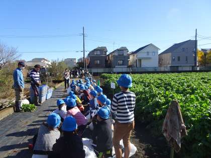 とても良い天気に恵まれ、深沢小の近くにある自然の教室の畑に、大根を堀りに出かけた3年生です。『おふくろ大根』という大きな大きな大根でした。