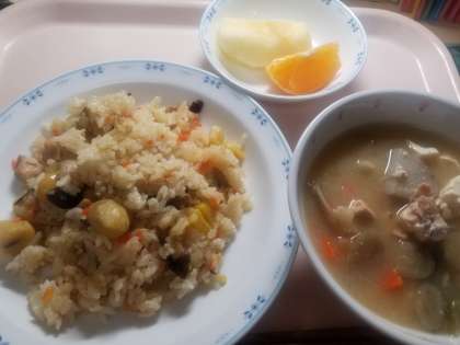 今日は栗にぎんなん、しめじに、しいたけ、彩りに人参