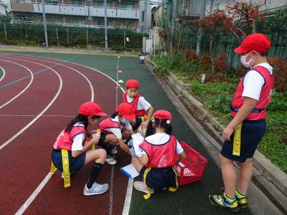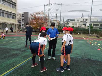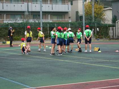 協力してトライすること、タグを取ること、声を出し合いながらゲームを楽しみました。作戦を振り返り、更に高めていく様子が見えました。