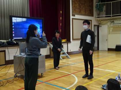 手話を使って、相手と対話することが楽しくなってきました。最後は、校歌を手話で歌えるようになった子どもたちです。