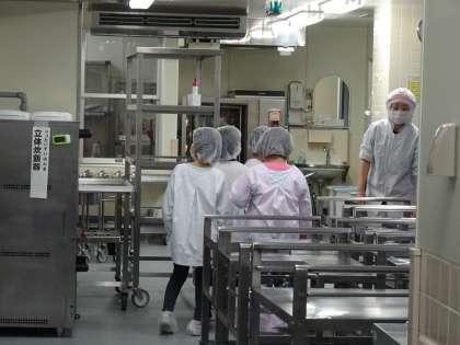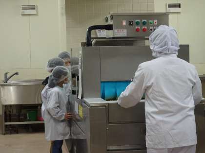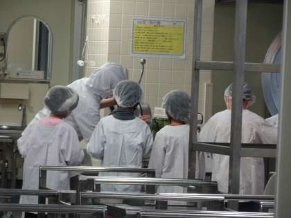 この日は、給食室の見学第2弾です。2年生が、特別に給食室を見学しました。驚くことばかりです。前回は、3年生でしたが、低学年のうちから、給食室で働く人に関心をもって欲しいという願いから実施しました。