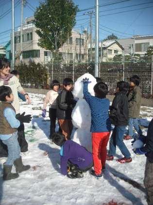 深夜に積もった雪が凍って、朝の歩道はカチカチでした。地域の方、保護者の方には、雪かきにご協力いただき、ありがとうございました。感謝申し上げます。おかげさまで、子どもたちは安全に登校できました。全校朝会のあと、校庭に積もった雪で、全校で遊びました。楽しい笑顔がたくさん見られました。