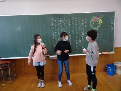 3年生は、新春アドジャンをしたり、先生の故郷のお雑煮の話を聞いたりしていました。わくわくした時間を過ごしました。
