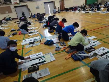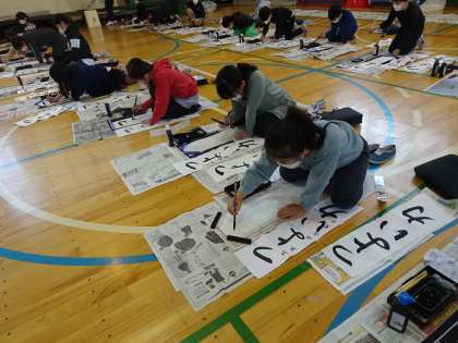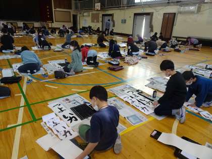 清々しい気持ちで、筆に心を込めて書きました。中心線を描くこと、名前を大切に書くことに集中して書きました。どの子の作品も、個性が出て、素晴らしい出来栄えでした。