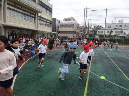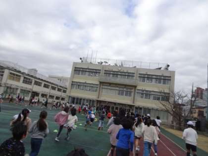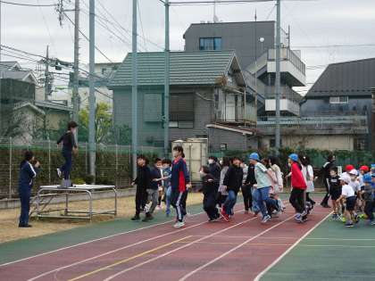 全校の子どもたちが、とにかく流れに乗っている感じです。ペースも速くなった1年生の力強い走りを見て、成長を感じました。
