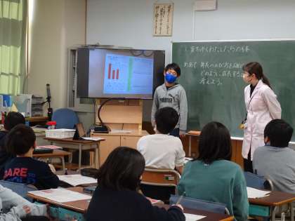 19日は4年2組、20日は4年1組に授業をしました。グラフの活用など、改善した資料から、自分の身体が大きくなった実感をもちました。