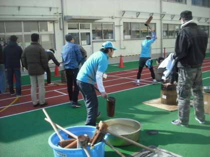1月28日(土)おやじの会主催のもちつき大会が行われ、200名を越す参加者でにぎわいました。町会の方々、児童館の方々、PTAの方々に大変お世話になりました。