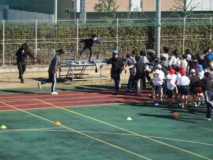 持久走タイムです。例によって、「ジンギスカン」のダンスで準備運動です。