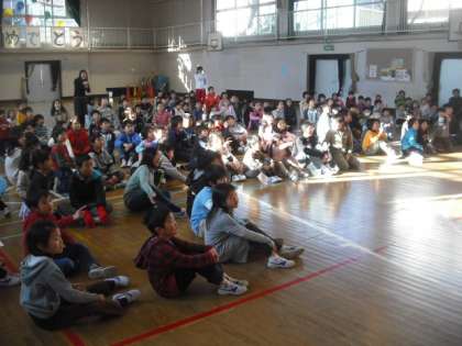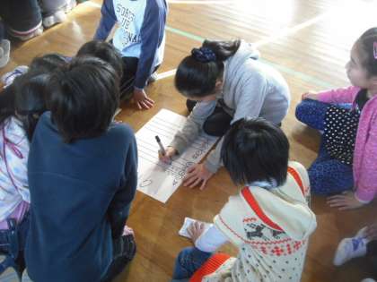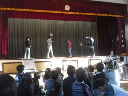 今日の児童集会は、まちがいさがしでした。緞帳の前後で4つの間違いを探しました。わかりやすい問題で、子どもたちは大いに盛り上がりました。
