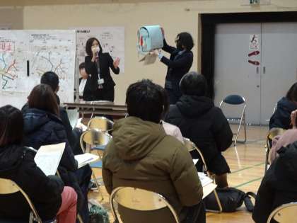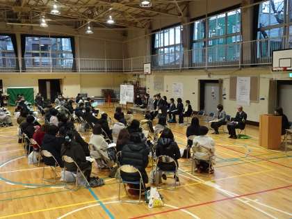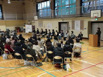 心がまえ、持ち物、教材等の説明は、1年生の学年主任から。栄養士さん、養護教諭と続きます。3年生の学年主任からは、地域班の地図の説明です。警察のスクールサポーターさんから交通安全の話、新BOPの事務局長さんや指導員のリーダーさんからは、BOPと学童の話がありました。