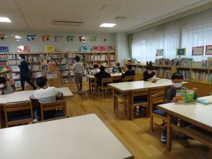 図書室では、図書委員会が、読み聞かせをしてくれています。低学年も楽しそうに本を選んでいました。