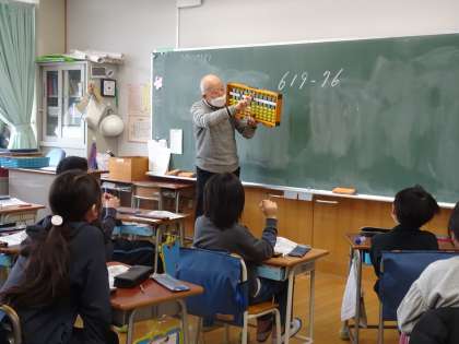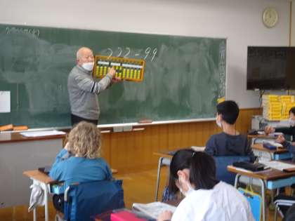 先生の、子どもたちを集中させる技が素晴らしいです。五玉を下ろして、2ひくと、三足したことになる。「借りてくればいいじゃないか。」と、声をそろえて言うことで、指の使い方まで身に付いてしまう、魔法のような授業でした。