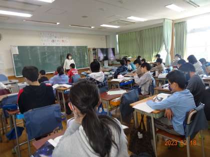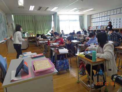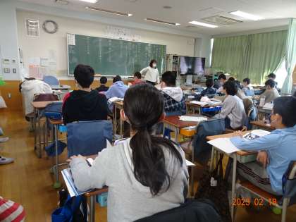 国語の文学作品『海の命』読んで印象に残ったことを発表し合っています。