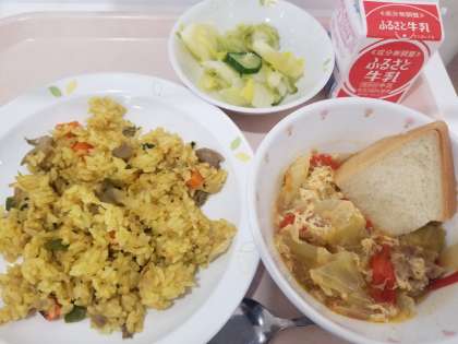 料理だそうです。給食ではたっぷりのきゃべつとトマト、玉ね