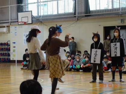 劇がお得意の5年生。6年生への思いを込めて、6年間を劇で表現しました。1年生の入学の頃から始まりました。