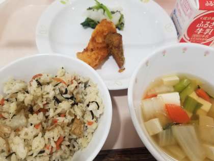 あるひじきご飯を合わせました。甘辛く炊いた