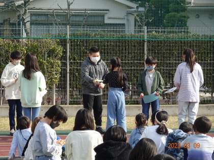 班長さんから下級生へのメッセージを伝えました。次の6年生へとバトンが渡されました。