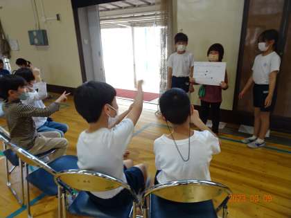 1年生から3年生までのファミリーグループでは、『自然の中から見つけた課題』を人に伝える活動を仕組みました。それぞれの個性が出ていて、時間がいくらあっても足りませんでした。