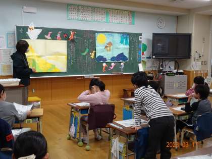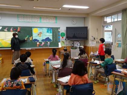 1年1組も同じ授業をしていただきました。子どもが自ら考える授業です。白い画用紙に自由に描く心の表現が素晴らしかった子どもたちです。