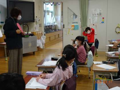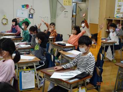 校長先生の出前授業。ちょうちょの気持ちも、学習感想も一生懸命発表できた1年生です。