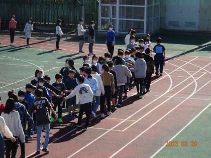 最後の全校朝会。皆でふれあった思い出を大切にしてほしいと願っています。