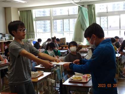 今年度の保健給食委員会の取組は、身近な話題で、日常的に取り組める内容がたくさんありました。給食を完食したクラスを表彰しました。完食した日が多かったクラス、完食した回数比べをしながら、残菜をなくすことに意識が出てきました。