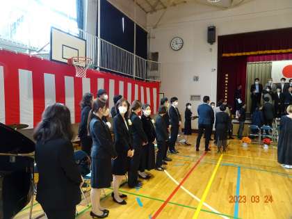 この仲間と一緒に過ごす最後の時間です。人生の節目の日。心を込めて式に参列している5年生とも最後の授業となります。ご来賓の皆様も準備完了です。