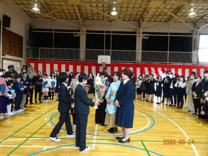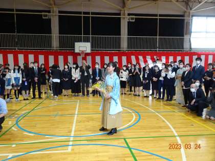 式が終わり、記念写真の撮影です。その後は、保護者の方から教職員への感謝の気持ちをお伝えいただきました。