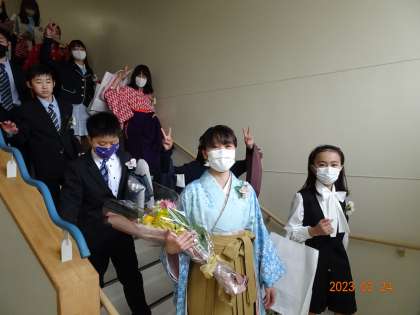保護者の皆様、教職員、5年生で、卒業生を送り出しました。