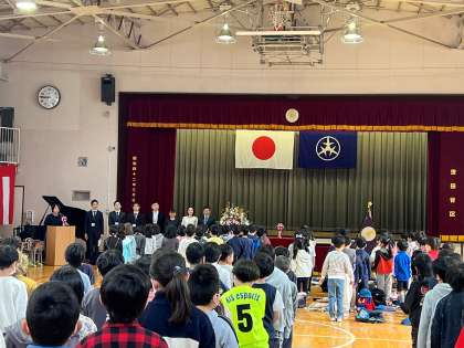 入学式の会場となっていた体育館を、6年生が、素早い仕事ぶりで、