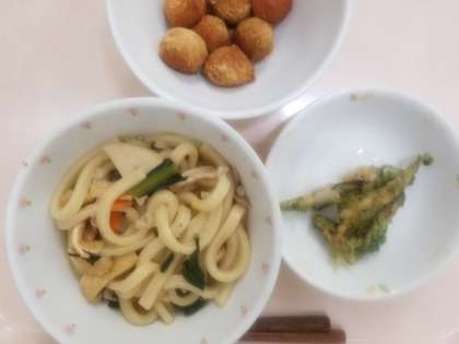献立にしました。いつもの煮込みうどんのお肉を1.5倍に