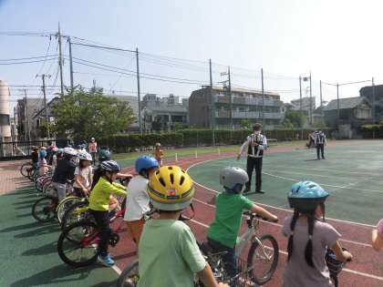 21日(金)3年生と1年生の交通安全教室が実施されました。3年生は、自転車の乗り方、1年生は歩道の歩き方・横断の仕方などを、世田谷警察署の方々にご指導いただきました。