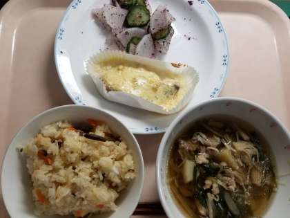 今日は春の山菜「ざんまい」を混ぜた炊き込みご飯を献立に