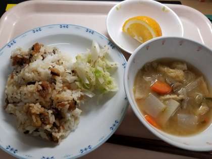 甘辛く味付け、それをご飯に混ぜ込みました。