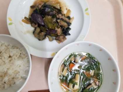 献立です。苦手ななすやピーマンですが、油