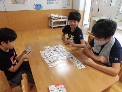 科学者の名前や、発明・発見の業績が記されている科学トランプを使って、楽しく「七並べ」を行いました。カードを出しながら、科学者の名前を言ったり、内容に目を通したりしながら、それぞれに科学について関心を深めていました。