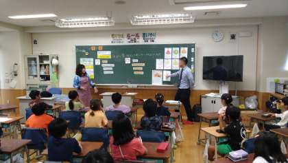世田谷区英語教育推進アドバイザーの山本惠美子先生(エミリー先生)が、先月の4年生に引き続き、今回は3年生に模範授業をしてくださいました。
