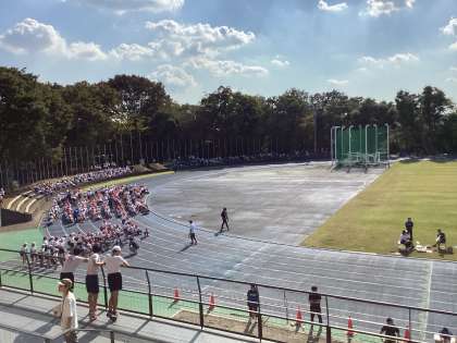 10月27日(金)の連合運動会は、写真の通り、本格的な競技場で、1500人の他校の6年生とともに、それぞれのエントリー種目に出場しました。誰もが緊張感を乗り越えて、全力で取り組みました。結果に満足できた児童も、そうでない児童も、みんなが「やりきった感」をたっぷり味わった素晴らしい一日となりました。