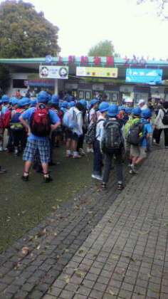 3,4年生の上野動物園遠足。満員電車もなんのその、しっかりと集団行動がとれています。とても暑いです。みんな元気に楽しんでいます。4年生が中心となって、班行動での行動もしっかりとできています。