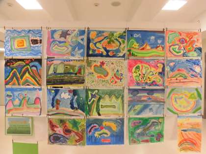 2年生の図工です。「えのぐにじ」というタイトルです。