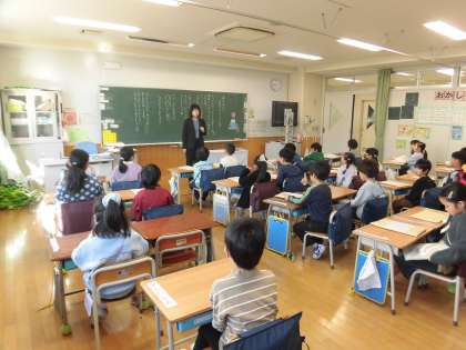 黒板には、担任の先生方の、子どもたちへのメッセージが書かれています(全学級)