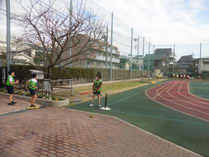 体育では、ベースボール型ボールゲームとして、ティーボールを行っています。