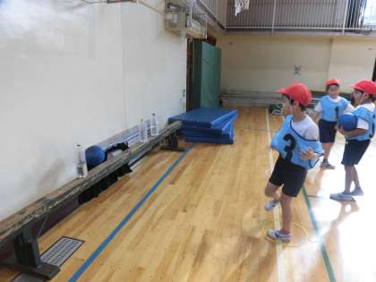 投げ方を意識して、さまざまなかたちの「的」に向かってボールを投げています。