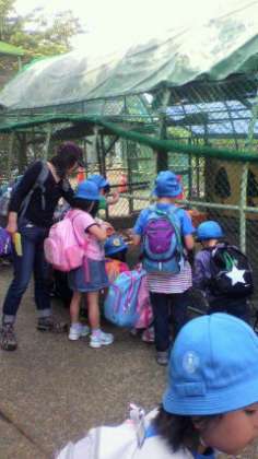 楽しみにしていた遠足、一、二年生は 元気に 動物たちと遊んでいます。